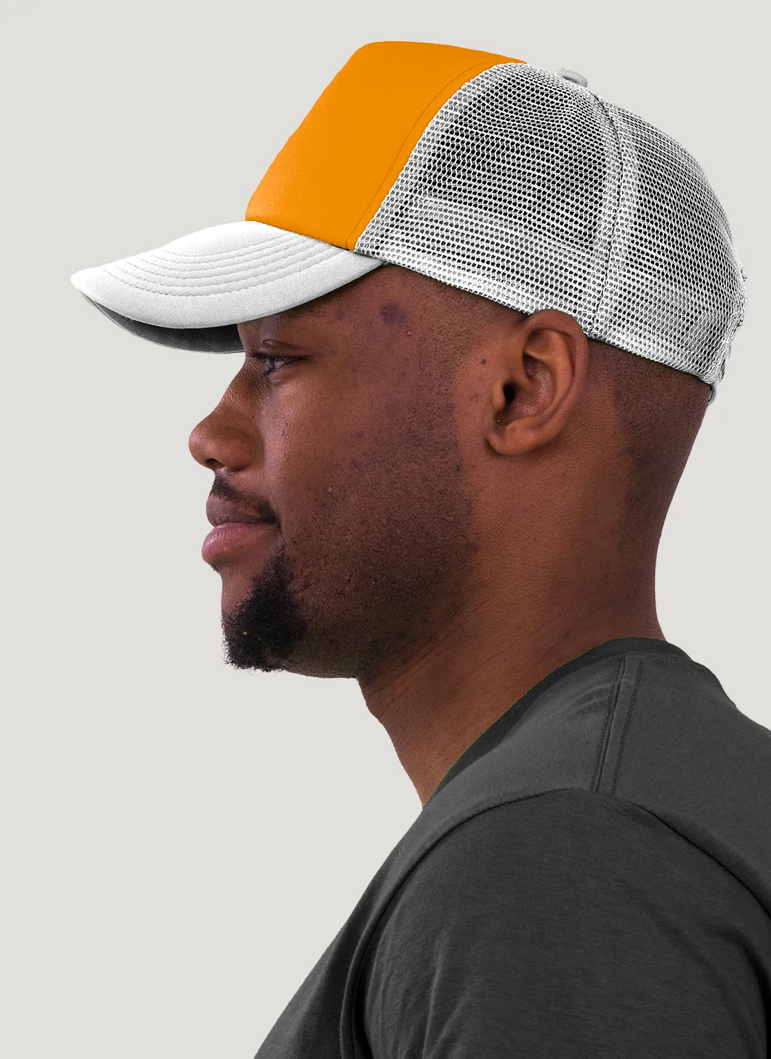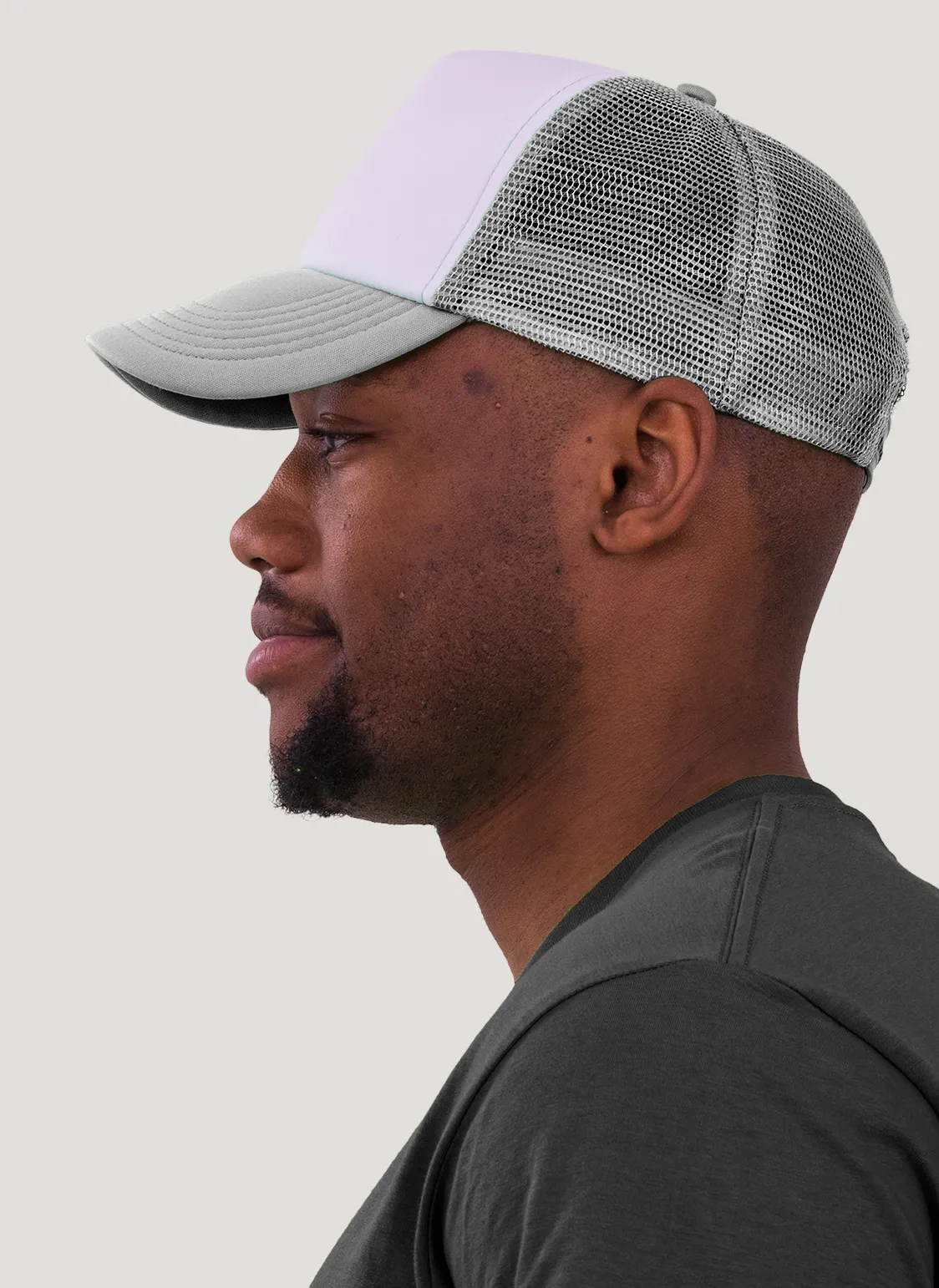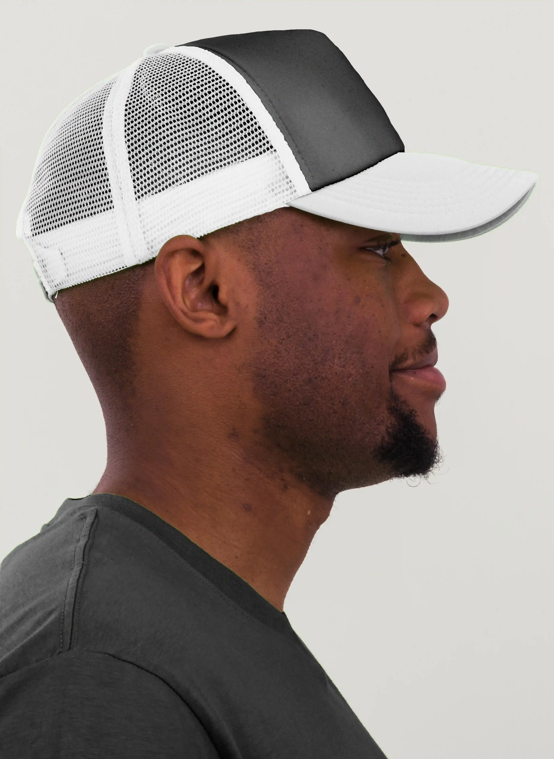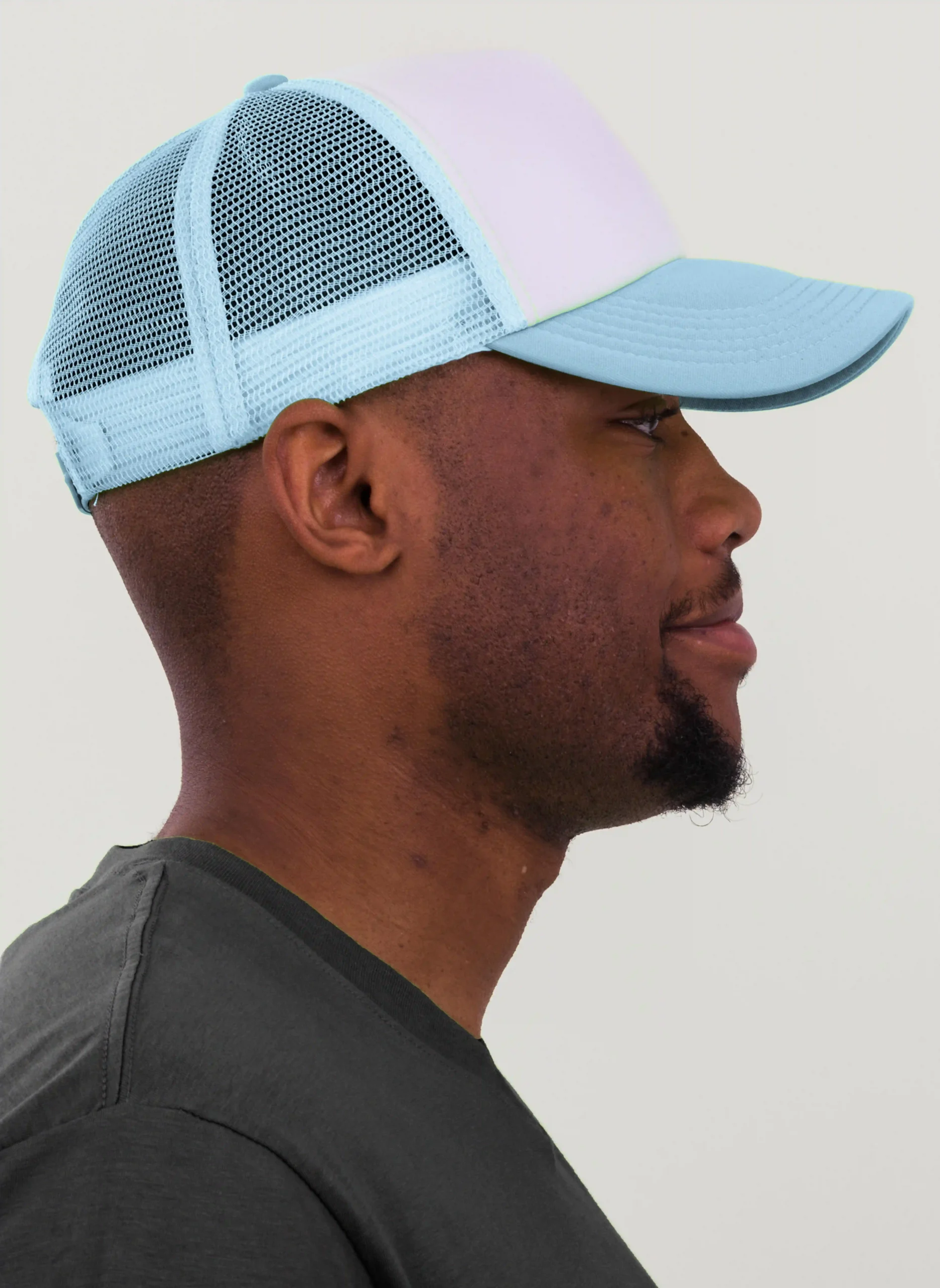 Die rechte Seitenansicht dieser trendigen 5-Panel-Mesh-Cap zeigt die perfekten Ziernähte auf dem Schild, die für einen eleganten Look sorgen. Mit dem praktischen “click & snap” Verschluss lässt sich die Größe individuell anpassen und garantiert optimalen Tragekomfort.
