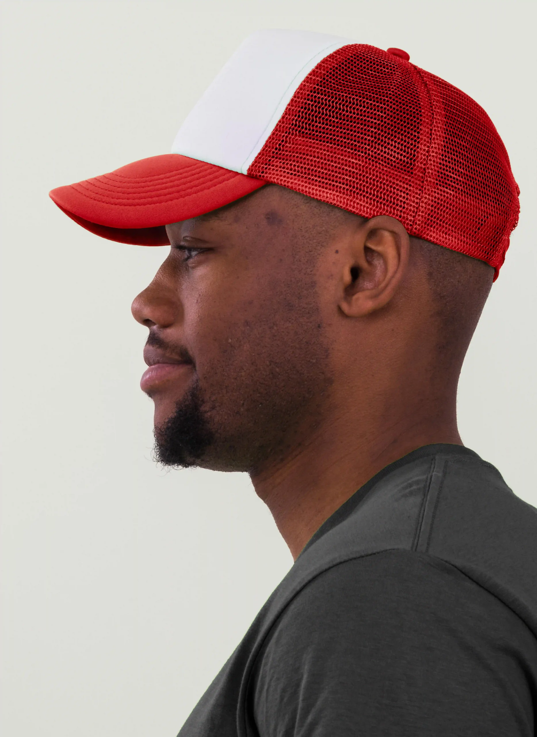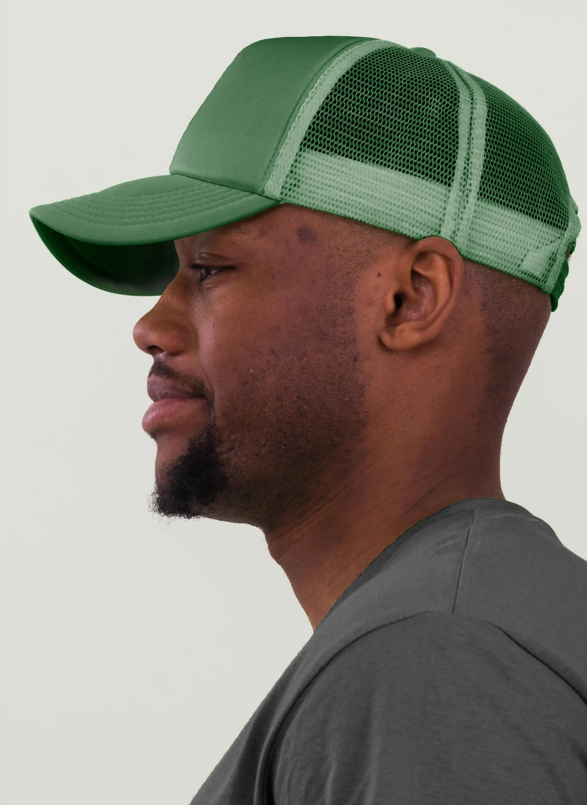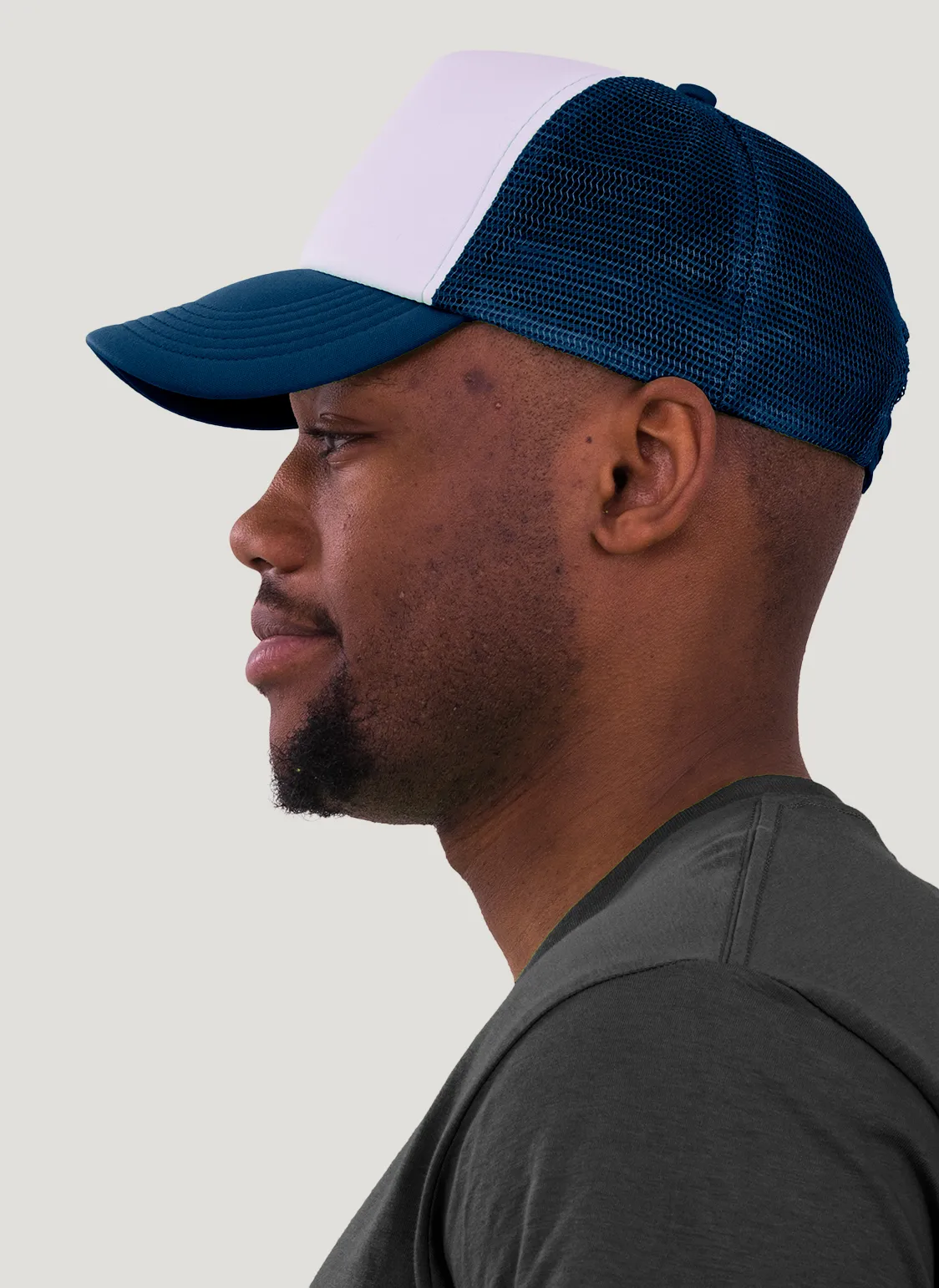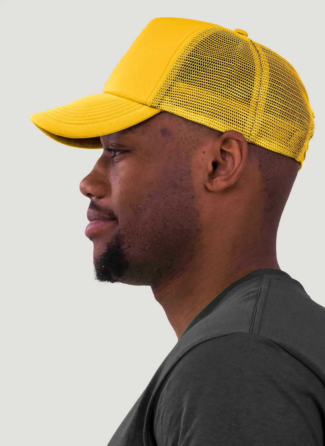 Die rechte Seitenansicht dieser trendigen 5-Panel-Mesh-Cap zeigt die perfekten Ziernähte auf dem Schild, die für einen eleganten Look sorgen. Mit dem praktischen “click & snap” Verschluss lässt sich die Größe individuell anpassen und garantiert optimalen Tragekomfort.