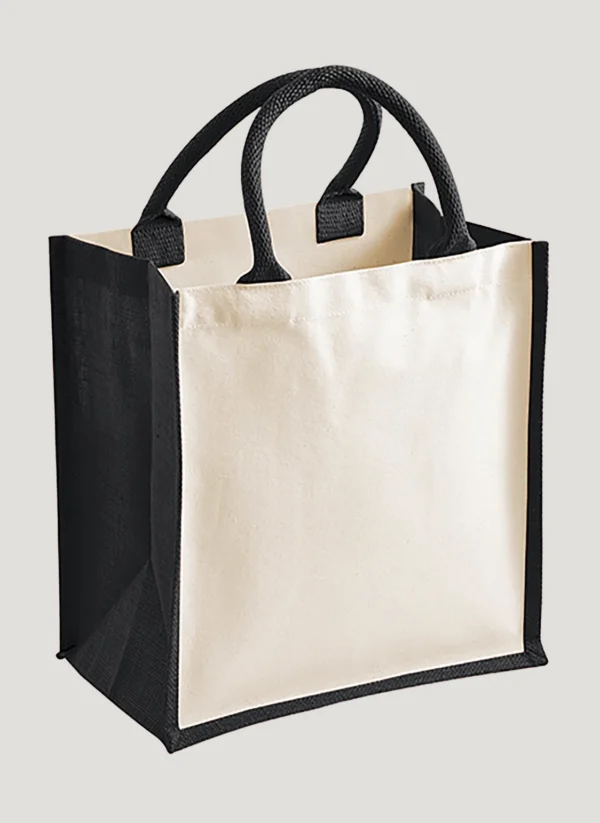 Der kurze Baumwoll-Henkel liegt angenehm in der Hand und sorgt für einen komfortablen Tragekomfort, während die beschichtete Jute Vorderseite und die robusten Seitenteile aus Baumwoll-Canvas für Langlebigkeit und eine ansprechende Optik sorgen.