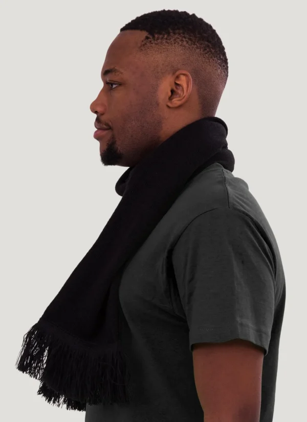 Der fransige Besatz verleiht dem Schal einen klassischen Stil und sorgt für einen Hauch von Eleganz. Die hochwertigen, doppellagigen Strickdetails und das abreißbare Klebeetikett unterstreichen die Liebe zum Detail.
