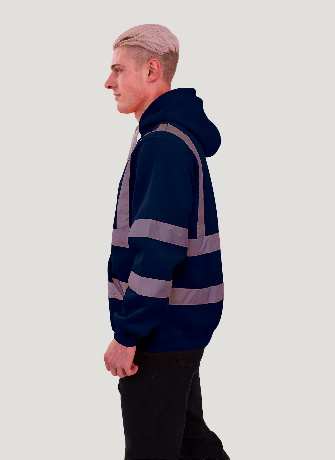 Die lässigen Kordeln verleihen dem Hoodie nicht nur einen modischen Akzent, sondern ermöglichen auch eine individuelle Anpassung der Kapuze für optimalen Schutz und Komfort. Hergestellt aus weichem, fusselfreiem Polyestergewebe, sorgt der Hoodie dank der reflektierenden Streifen für Sichtbarkeit und Sicherheit in jeder Situation.