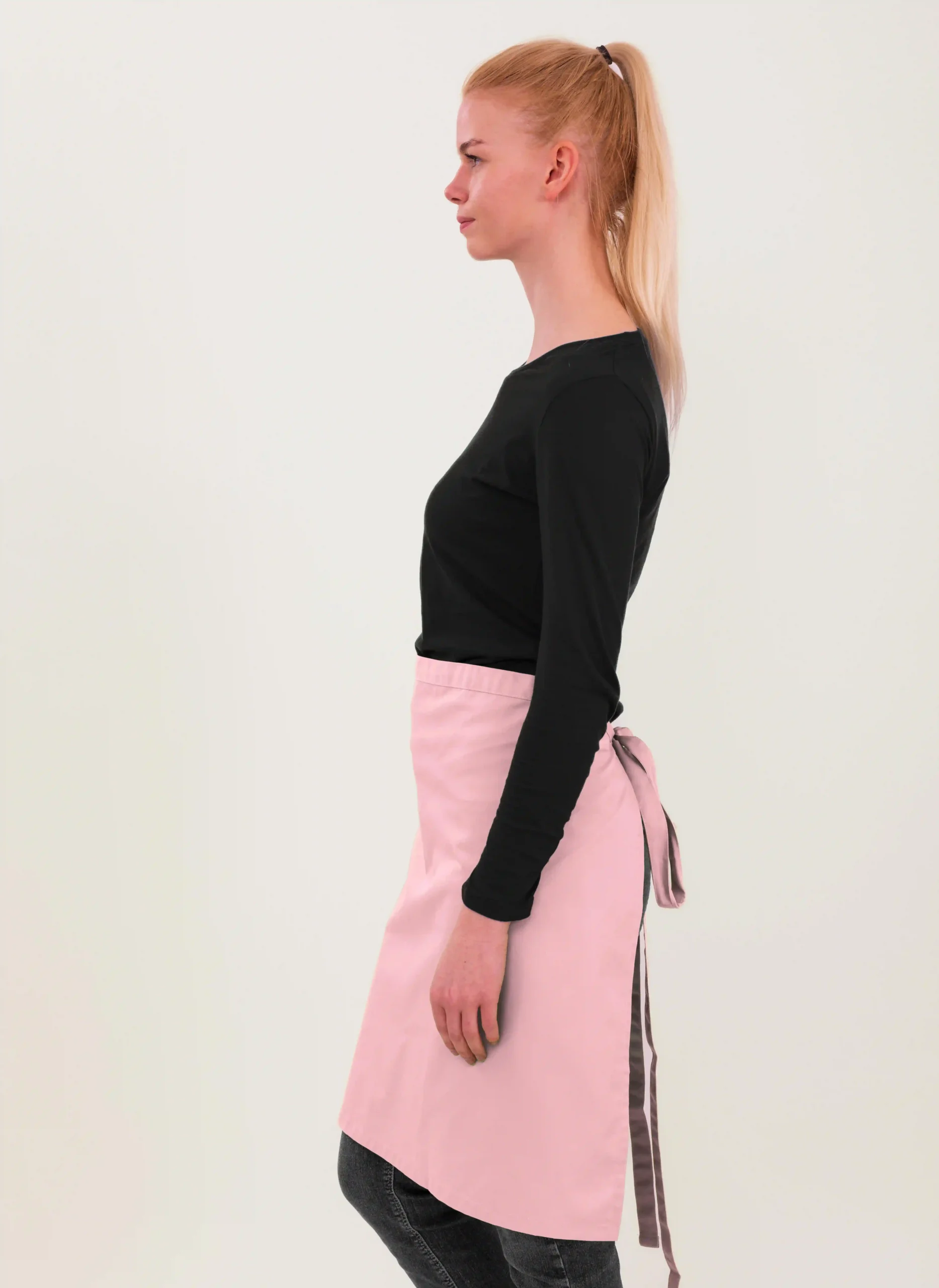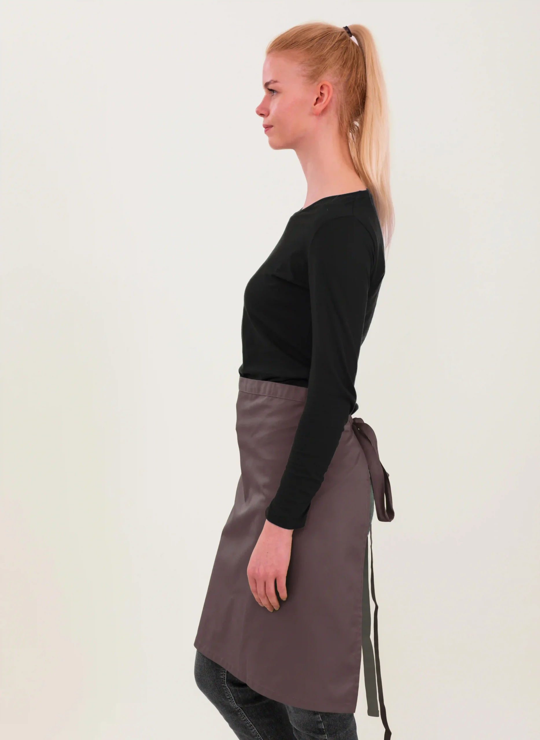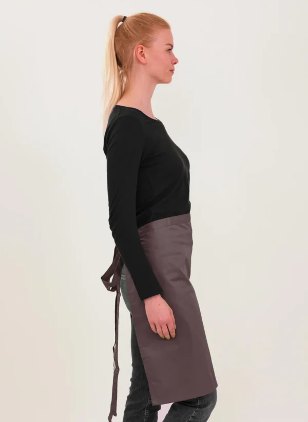 Der obere Teil des Vorbinders strahlt durch das hochwertige Köpergewebe mit 215 g/m² eine stilvolle Robustheit aus, während das durchgehende Band aus Schürzenstoff und die Nahtsicherung für Langlebigkeit sorgen. Waschbar bis 60°C, bleibt er stets frisch und einladend.